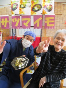 そして今回は焼き芋屋台風の演出もあり作務衣を着たスタッフが威勢よく「いらっしゃ~い!美味しいお芋ができたよ~」の呼び声もあり中央フロアが活気付き皆でわいわいしながらおやつの時間を楽しみました☺