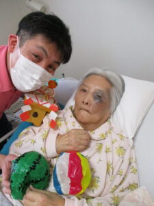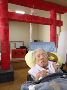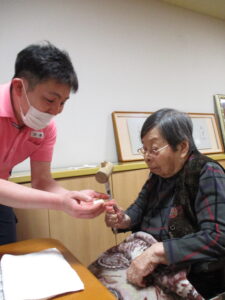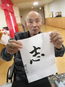 まず最初は元気に体操から始まりイベント主催スタッフの楽しいレクで大笑いしていただき、本日のメインイベントについて説明しました♪ そもそも鏡開きの由来について・・改めて聞かれても皆さん「そ~いや~なんかな??」といった感じ😊鏡餅の丸い形が昔の銅鏡に似ていたからだそうです!そして刃物を使うと切腹を連想するので木槌で叩いて割るのですが「割る」という言葉も縁起が悪いので「開く」と言うんだそうです、なかなか勉強になります!