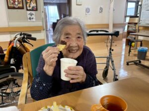 バナナ、パン、ポテトチップスの3種類を用意し、チョコにつけていただきました。利用者様の中には甘いものが好きな方も多い為、「ありがとう。おいしいわ!」と喜んでいただけました。普段なかなか食べる機会がないので「初めて食べたわ!」と言う方もおられました🥰