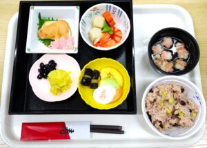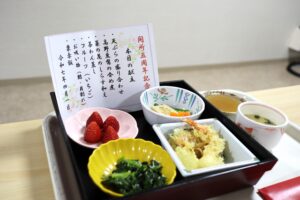 毎日の生活を彩る食事には工夫が施されています。毎月のイベント食にはご利用者様の声など反映されたり、食事形態の変更も柔軟に施されています。