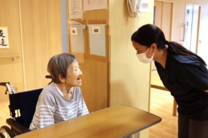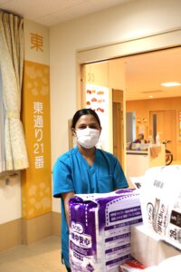 その中でも介護スタッフには外国人の受け入れに力を入れており、施設内での人材育成を行っています。時には言葉の壁にとまどいながらも、ご利用者様と関わり介護技術を磨いています。