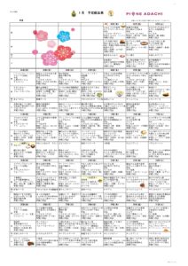 2026年1月 月間献立表