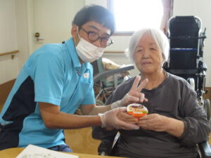 おやつの時間にもジャンボプリンを召し上がってもらい、こちらも大変好評でした♪