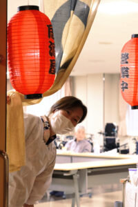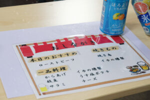 用意した提灯やのれん、飲み物や食べ物を準備🎵