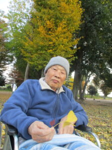 散歩組は本格的な冬が来る前に近所の公園へ紅葉を見に行ってきました!この日は風もなく日差しが暖かかったのでお散歩日和でした、厚手のアウターをしっかり着て出発😀公園までの道中にも真っ赤なモミジがあり「きれ~じゃな~うちの近所にも立派な木があったんよ」なんて懐かしいお話をしながらゆっくり歩いて大きなイチョウの木がある公園に到着しました。いつもは下を向いてる時間が長いですが空を見上げて、きれいに紅葉している木々を眺め深呼吸して気分転換しました。