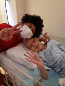 寝たきりの方も居室のベットで「にこっ」と、はいポーズ。