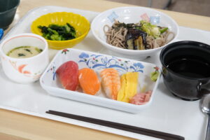 昼食には、節分にちなんで「握り寿司」が出され、皆さん大喜びで美味しく頂けました。