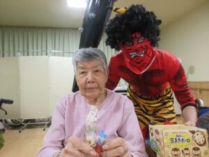 さて、2月は節分という事で、豆まきをして頂きました!