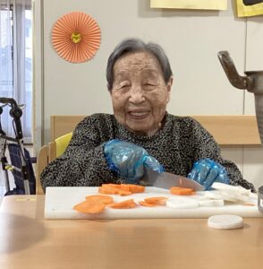 利用者様に実際に包丁を使用していただき、人参と大根を