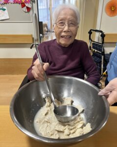 その場では食べず、その日の夕食時に酒粕汁を利用者様に