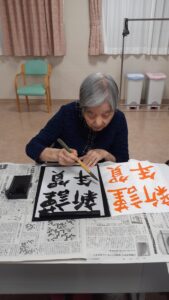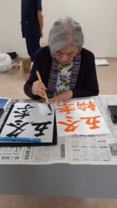 んにちは!2月の書道クラブの様子を紹介します。皆さまお手本を見ながら一筆一筆真剣な表情で取り組まれていました。