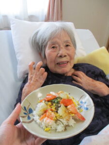 歌の力は素晴らしいもので懐かしい記憶と共に表情まで若返り得意げに歌われていました、去年の大晦日にTVで美空ひばりスペシャルを観ながら皆さんで盛り上がったのを思い出しました♪往年のスターはいつまでも色あせないものですね✨「懐かしいわ~歌詞を覚えとるもんじゃな~」など話してるうちにお寿司の準備が整いあちこちのテーブルから歓声が上がり普段より多い人数で囲むテーブルで和気あいあいと今年一念を労いながらお食事してもらいました。