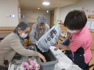 3月の行事として、花の植え替えを行いました🌸