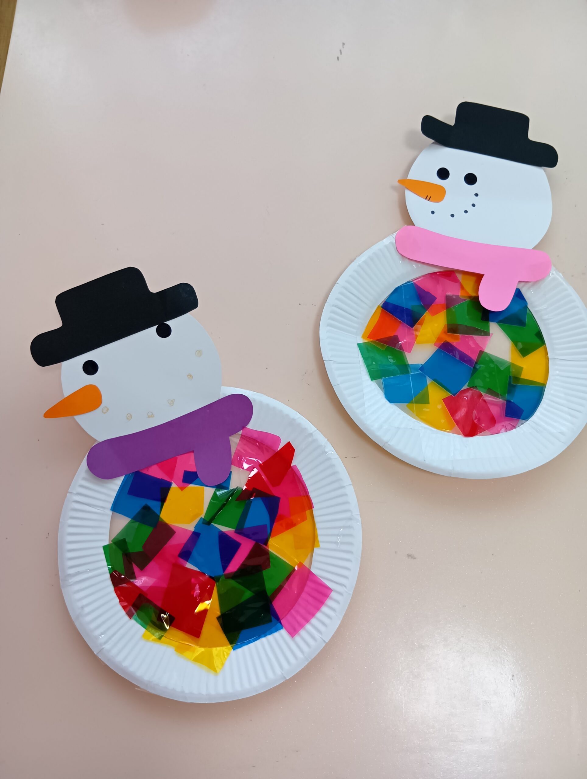 保育士と会話を楽しみながら自分で好きな色のセロハンを貼ったり、マフラーの色を選んでくれました。