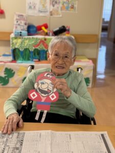 目・鼻・口のパーツを見ながら、「懐かしいね」「昔よくやっていたよ」と行事が始まる前から自然と笑顔が溢れ和やかな雰囲気で包まれていました。