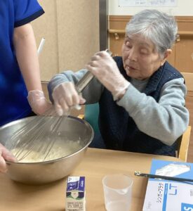 2月はバレンタインにちなんで、蒸しパン作りをしました。