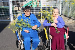 天気が良かった日に施設の裏の土手に菜の花を取りに行きました。🌤️✨