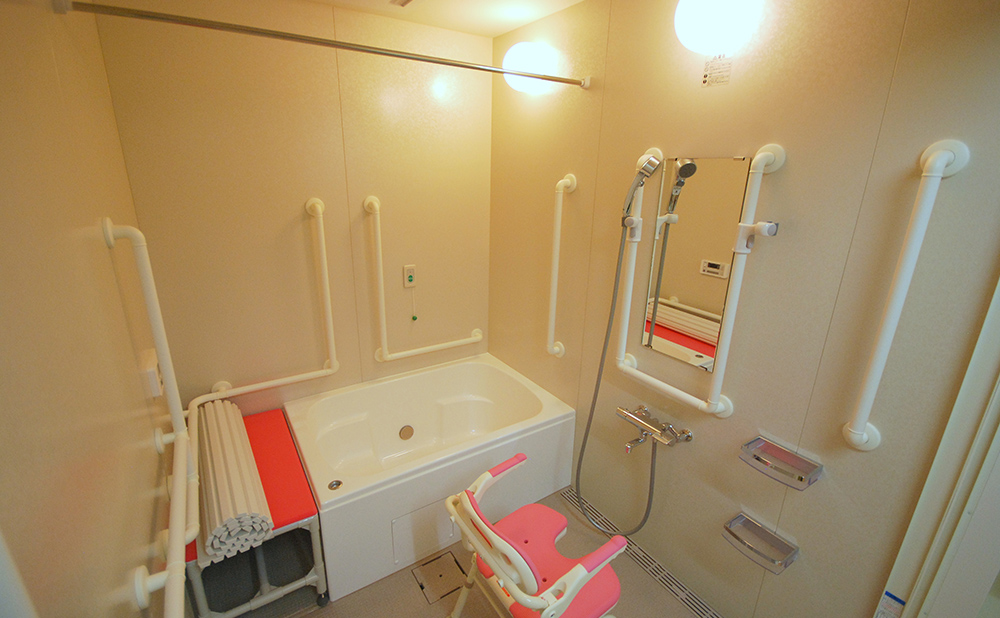 一般浴、特殊入浴ともに週2回以上行います。プライバシーを守り、快適な入浴時間を楽しんでいただけます。体調不良等にて入浴できない方には、清拭を行います。